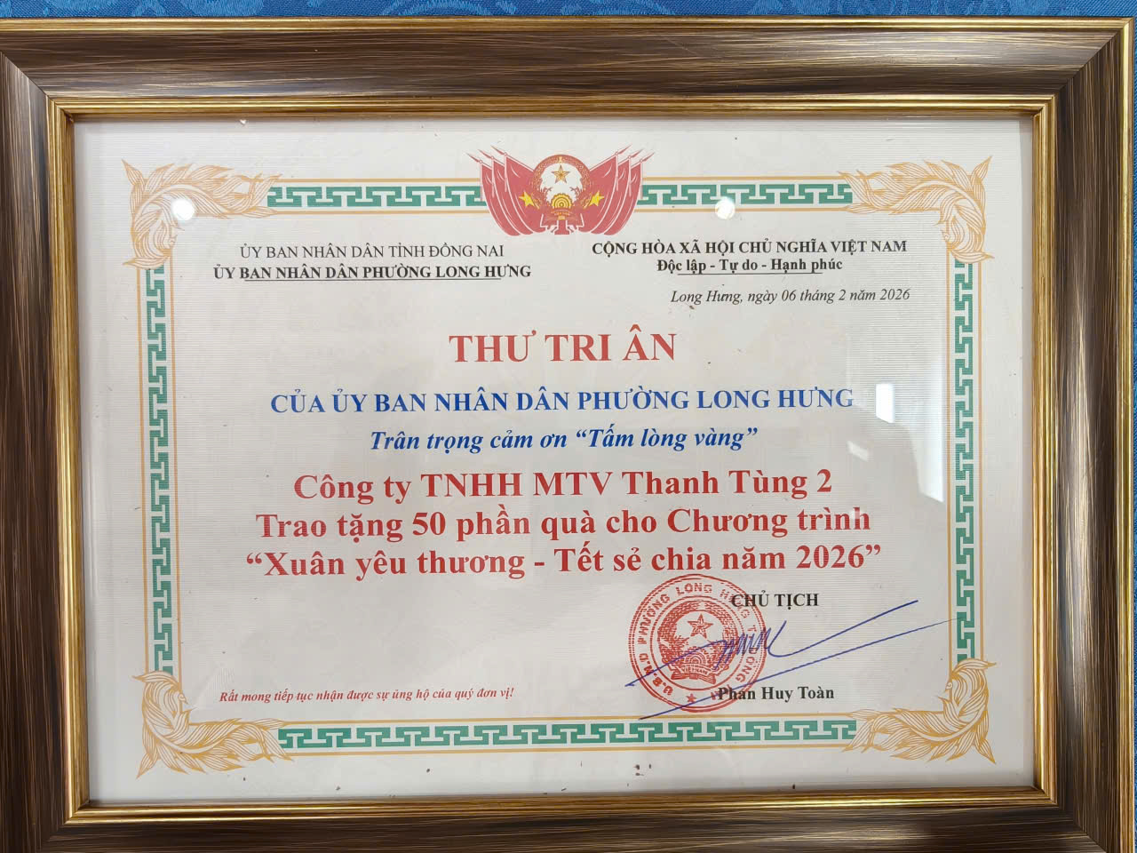 Tặng 50 phần quà Tết cho bà con thuộc hộ khó khăn tại Phường Long Hưng, tỉnh Đồng Nai